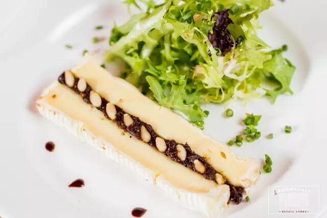 夹无花果酱及干果,配迷你混合生菜色拉