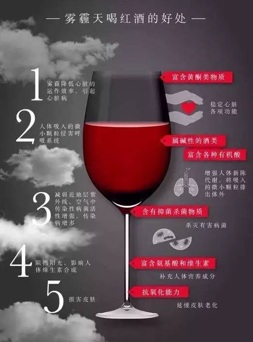 日常生活中,我们怎样可以预防雾霾导致的系列疾病?一句说出来你可能半信半疑的话:每天一杯红酒,其实就能对雾霾疾病起到良好的预防效果。不信?看看下面的图你就知道了。